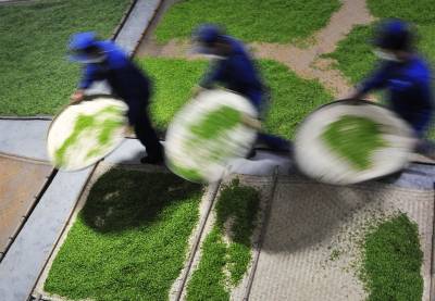 3月17日晚,恩施市屯堡乡花枝茶叶有限公司工人加工春茶。当天,茶叶鲜叶价格最高达到每公斤160元,一亩茶可为农民增收3000至5000元。恩施州现有富硒生态茶园70万亩,今年产值将突破10亿元。