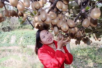 金色十月,记者在世界猕猴桃原生地——三峡雾渡河镇观音堂村猕猴桃基地看到,成熟的猕猴桃挂满枝头,绿色中透着金黄,农民喜采猕猴桃并吸引外来游亲手采摘,成为金色十月一道独特的风景旅游线。