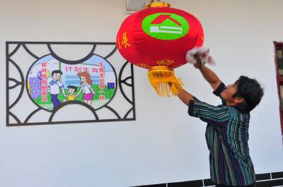 计生文化进农家 10月9日,恩施市龙凤镇双堰塘村民正在为计生红灯笼擦拭灰尘。 该镇在龙凤至龙马公路沿线打造生育文化走廊 ,建成了“生育文明幸福家庭红灯笼”示范线、双堰塘村建设文化大院,绘就人口文化大院计生宣传画14幅,沿线悬挂计生红灯笼250对,让计生文化走进农家。 通讯员 谢顺 蒲开红 摄