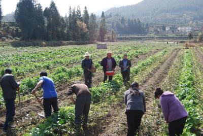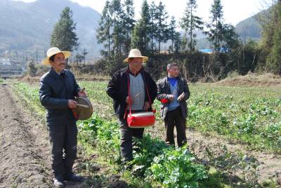 (签约摄影师汪盛华)”各位农友都攒劲,常言一年无二春。人民以生产为本,渴盼得到好收成。”3月17日,宣恩县优秀民族民间艺人、65岁的冷浩然(中间打鼓者)和他的薅草锣鼓班子(图一),在该县晓关侗族乡黄河村十三组茶苗萝卜套种田间,面对群体薅草者(图二),边打薅草锣鼓边即兴演唱,促茶苗萝卜春管(图三)。薅草锣鼓是宣恩县目前唯一被批准的国家级非物质文化遗产,在农业生产中常发挥着增强兴趣、消除疲劳、促进生产等重要作用。薅草锣鼓班子边打锣鼓边即兴演唱,内容通俗,文字押韵,与群体人员给禾苗锄草共同构成一幅动听、好看、美妙的农村生产图画。