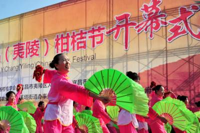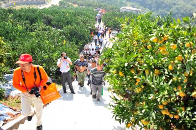 2013年10月12日,橘红满园时节,享有“中国早熟蜜柑之乡”、“中国柑橘之乡”和“湖北省水果生产大县(区)”美誉的宜昌市夷陵区,红红的柑橘挂满枝头,橘农们正忙着采摘、销售,到处呈现一片丰收的火红景象,吸引国内外客商和游人踏至纷来,参与在第三届中国宜昌(夷陵)柑橘节上举行的游园、观橘、采橘、品橘、购橘等活动,尽情游览三峡夷陵橘都美景,品尝峡州最甜的宜昌蜜橘。