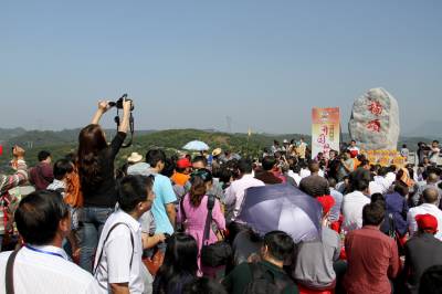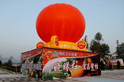 3221大会现场巨大的塑料柑桔宣传。