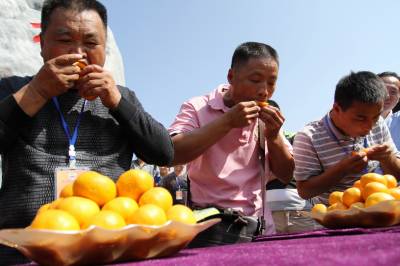 3716标准果园开园现场举行吃蜜桔比赛