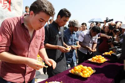 3771俄罗斯等外国客商参加吃蜜桔比赛
