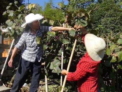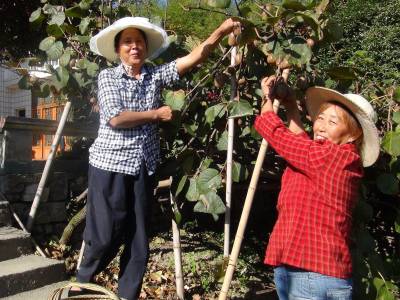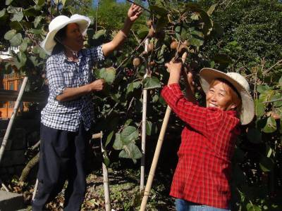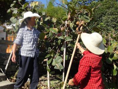10月12日,鹤峰县走马镇官仓村村民李玉政组织工人在有机猕猴桃种植基地,采摘成熟的猕猴桃。 近年来,该镇大力发展已猕猴桃为主的林果基地,走“专业合作社+基地+农户”模式,发展有机猕猴桃种植基地2000多亩,采用农家肥和有机肥,利用太阳能杀虫灯对病虫害实施绿色防控,果农们喜获丰收,预计今年能实现产值800多万元。 汪正玺 郑金敦 摄
