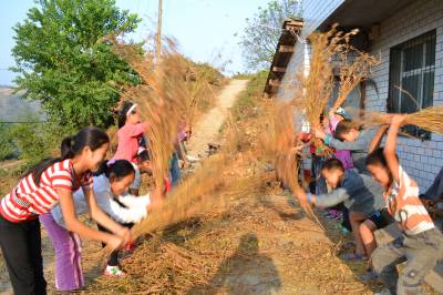 小学生农家院体验劳动乐趣
