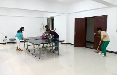 黄石市黄石港区南岳社区干部正在打扫刚刚装修完毕的社区活动室。