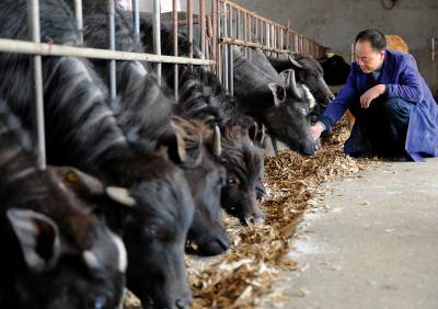 军垦农厂养殖”奶水牛”17日,李祥国正在黄石市阳新县军垦农厂喂”奶水牛”。李祥国毕业于湖北农学院,2006年在黄石畜牧公司工作了十多年的他来到军垦农厂,利用这里的自然条件,经营起了”奶水牛”养殖。从最开始的19头水牛,如今已经达到90多头,成为湖北省唯一一家养殖”奶水牛”的养殖户。为了把”奶水牛”养殖业做大,他还从咸宁引来投资商,目前该奶水牛养殖厂总投资近千万元,奶水牛预计两年后可产奶,奶水营养价值高出市场普通牛奶价值一倍,奶牛每天预计可产奶10公斤,每公斤市场价在20多元,经济效益可观。黄石市黄石日报摄影部邱孝威摄