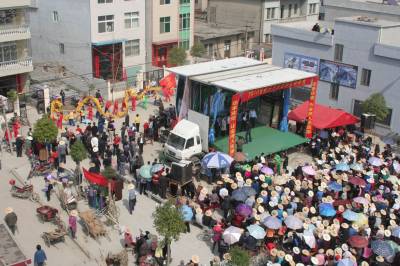 天门2010年”文化三下乡活动”启动3月18日,天门市岳口镇金湾村委会广场上龙腾狮舞,热闹非凡,由天门市委宣传部、市文广新局组织的2010年”文化三下乡活动”启动仪式在这里举行,今年,该市将继续送戏下乡260场,送电影下乡1万场,送图书10万册,再建150家农家书屋,切实解决农民朋友看书难、看戏难、看电影难的问题,满足农民朋友求知、求美、求乐的精神文化需求。(本报视界网刘银斌摄)