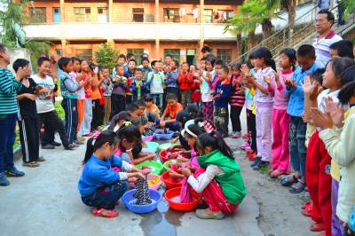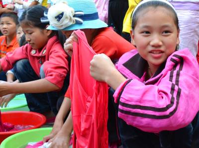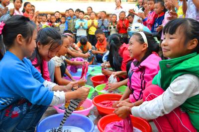 10月17日上午,湖北省郧县柳陂镇西流小学组织100多名住校“留守儿童”在校园内小操场上举行了一场别开生面的“留守”住校生洗衣服技能大赛。看!一双双稚嫩的小手,揉、搓、褪、洗……有模有样,忙得不也乐乎,赢得连连掌声。“校园赛技能”活动,不仅培养了孩子们生活自理的能力,还丰富了学生在校期间课余生活,为大山娃的“留守”生活添了信心和乐趣。