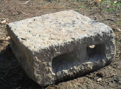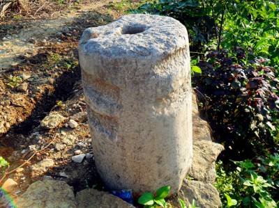 硪分板硪和抬硪两种。板硪是由石匠凿成的重约100公斤左右的正方体石块,边长1.2尺,高4.5寸, 上面四角侧靣凿孔,穿入经过火撩过的小指粗的土楠木或木楂果子树条作环,用四根麻辫拴在环上。打硪时四人提辫,两人抓环,随着打硪号子音节,将硪举过头顶后用力让其落下,将土打结实。打一硪的号子为﹕(领唱) 也吆吆伙哦呀,(合唱) 呀伙也呀伙哦呀,合唱时众人举硪打下。若领唱者唱“吆也子嗬呀,嗬呀嗬子吆,打四硪呀,吆呀子嗬!”, 众人需接唱一遍硪歌, 每唱一句打一硪,共打四硪。抬硪为梯形石凳,高2.8尺,上、下底边长为6寸、1尺,重约二百多公斤,顶部四侧面凿成凹槽,用四根木杠成“井”字形于凹槽中并绑紧,10―12人操作,号子同板硪。1982年分田到户以后,农水建设少,不再使用石硪。(本报视界网 袁国悦摄)