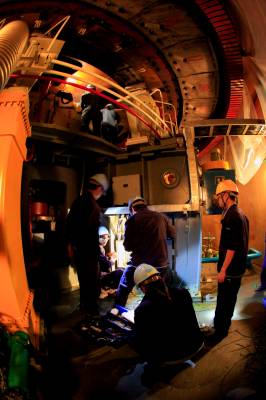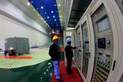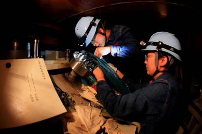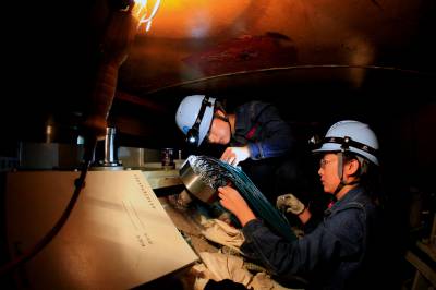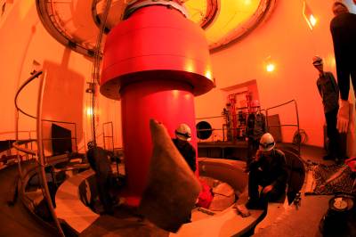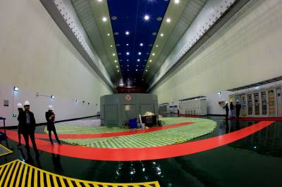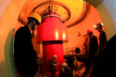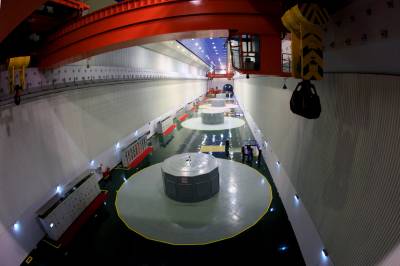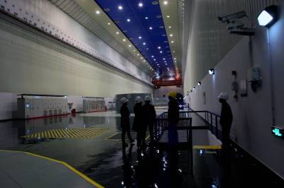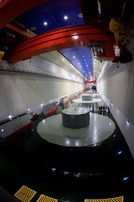 17日,水布垭电站发电厂房里工作人员正在巡查发电机组平稳运行情况。