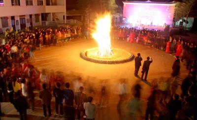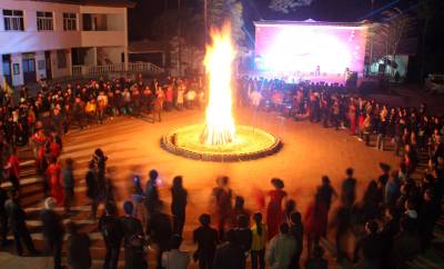 3月19日,一批游客在恩施市柳州城景区围着篝火,跳起了摆手舞。据悉,这批由全国各地高校的老师、教授组成的350人旅游团是恩施市迄今为止接到的最大旅游团。随着高速公路的开通,恩施旅游可进入性提高了,组团和地接业务比去年同期增长了50%左右。