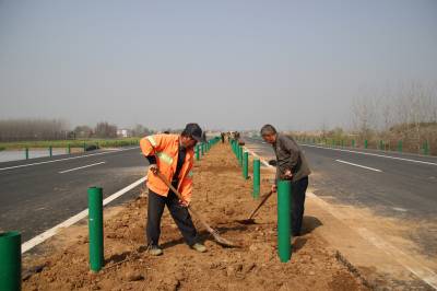 全长185米的武荆高速公路主体工程已全部完成。3月19日,武荆高速公路汉川段的工程施工人员正在紧张进行中间隔离绿化带的施工,为全线通车做好准备工作。