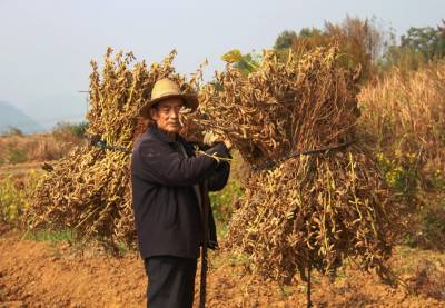 10月23日,竹山县秦古镇小河村村民高兴地挑着刚扯得黄豆挑回家。入秋以来,该县当地村民积极组织在家劳力,趁有利墒情,适时播种、移栽或者收获农作物,到处呈现丰收与劳作的喜悦场景。(视界网程平) 地址:竹山县林业局 电话:13872773800