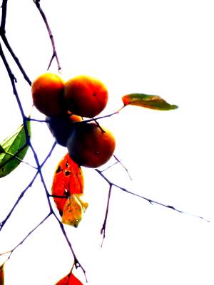 镇子边的柿子树/枝叶稀疏的秋之树/我只能站在路口望着她——海子