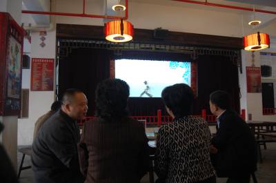 2013年10月24日,湖北省文化厅厅长雷文洁在云梦考察、观看皮影戏表演。