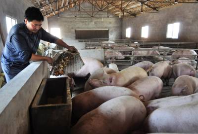 看不见污水的千头养猪场 10月24日,杨帮清在给猪喂食。杨帮清是宜都市枝城镇六里冲村七组人,2011年,他投资120多万元建起能同时饲养2000头的养猪场及200立方米的沼气池,同时,管理57亩茶园。猪的排泄物全部进沼气池,沼液通过管道流进茶园。今年他已出栏生猪650头,目前存栏900多头,全年可出栏1600多头生猪,菜叶、生猪产值可达200多万元。原来茶叶需要2万元的商品肥料,今年全部用沼液,不仅节约了成本,而且提高了茶叶品质。若大的千头养猪场看不见一点污水、猪粪便裸露在外,是名副其实的环保养锗场。