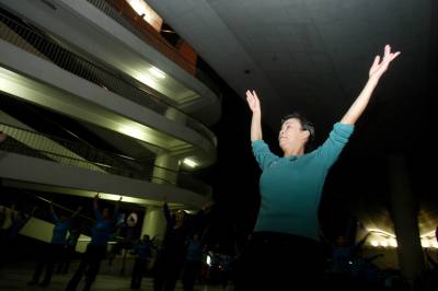 24日晚7时50分,湖北省宜昌市城区夷陵长江大桥下,61岁的退休老人喻汉华带领老人们在跳健身舞。近年来,随着老年人体育工作的推进,夜幕下的宜昌街头随处可见跳舞的老人们,他们在用舞姿改变自己身体和精神面貌的同时,也给宜昌增添了别样的风采。