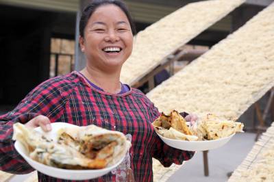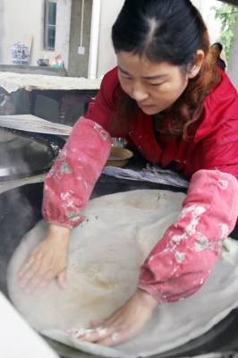 何桂香18岁开始做豆丝,如今整整三十年。这个月她家双喜临门,200多平的新厂房投入使用,产品商标也正式批了下来。“我家的豆丝走精品路线,一年收入10万没问题。”面对未来,这个沙窝乡的农村妇女满怀雄心壮志。