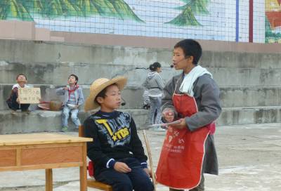 10月25日,湖北省襄阳市襄州区双沟镇第二小学学生激情展演自编、自导的课本剧。该校坚持在教学中课本内容剧情化,让学生在合作探究中加深对教材、生活的理解,提升组织创新、口语表达和才艺表演能力。(周学明 摄)(通讯地址:湖北省襄阳市襄州区双沟镇第二小学 邮编:441111)