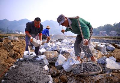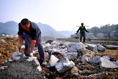恩施斥资十亿力助冬农开发 10月26日,在宣恩县高罗乡麻阳寨河塘清淤治理工程施工现场,工人正在抓紧修筑河堤边的耕作道。恩施州水利部门将秋冬农田水利基础设施建设作为今冬明春工作的重中之重,围绕群众普遍关注的农村饮水安全、中小河流治理、小型农田水利等八方面工作,将投入资金9.8亿元,分别新开工32个、续建27个水利项目,助力秋冬季农业综合开发。 视界网 李以国 摄(13997771030)