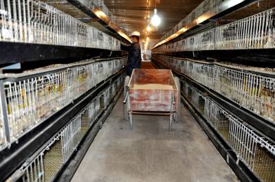10月25日,恩施市新塘乡华才农业发展有限公司蛋鸡养殖场工人正在检查产蛋情况。