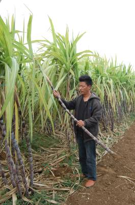 2013年10月31日,云梦县清明河乡桂花村王大黑家庭农场甘蔗喜获丰收。清明河乡没有种植甘蔗的历史,王大黑通过学习实验引种,今年虽然遇到大旱,王大黑坚持抗旱保蔗,甘蔗依然夺得好的收成,清香甘甜的甘蔗吸引众多客人前来田间现场购买。本报视界网 陈保忠 摄