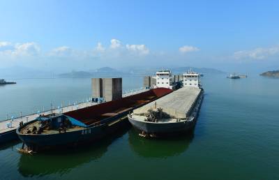 湖北秭归:三峡枢纽江南成品油码头完成首个墩台浇筑施工(客户端采稿)
