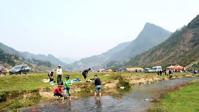 3月20日,宣恩县椒园镇洗草坝村一片面积数十公顷的草地上,游玩的人们在此开起田间”音乐会”,音乐、歌声在山间回荡,加上蓝天白云,让人心旷神怡,不禁在此引吭高歌。当天是星期六,初步统计有来自宣恩、恩施、咸丰、利川等周边县市100余个家庭近千人来到此次进行户外活动,并在草地上游玩、歌唱、野炊。但由于此地是一片并未进行旅游开发的山中”草原”,甚至连个公共厕所都没有,更没有人员对此地进行有效管理,面对如此大的人流量,洗草坝脆弱的生态处境堪忧。(视界网签约摄影师:宋文摄)