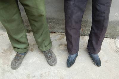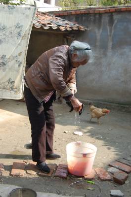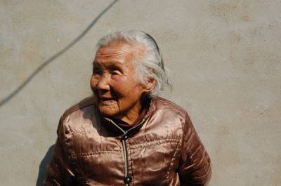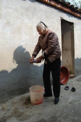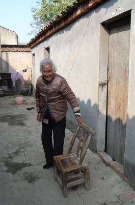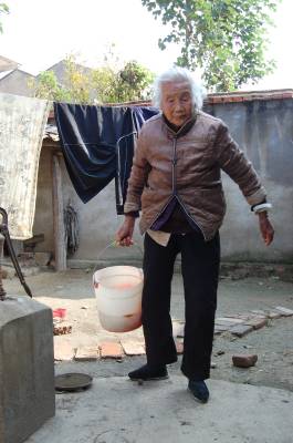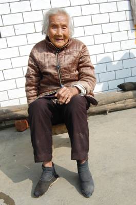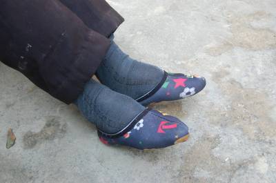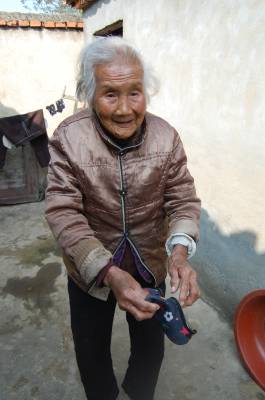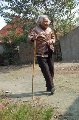 2013年11月3日,云梦县倒店乡三杨村102岁的陈秀英老人,依靠“三寸金莲”的小脚行走生活。