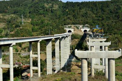 谷竹(谷城至竹溪)高速公路全长229.46公里,预计工程总投资178.76亿元,是湖北省规划的“六纵五横一环”骨架公路网重要组成路段,起于谷城石花镇陡坡店,与已建的福银高速公路相接,经保康县、房县、竹山县、竹溪县等地,止于鄂陕交界处的罗汉垭附近,与拟建的陕西平利至安康高速公路相接。工程从2010年8月开建以来,经过数千筑路大军3年多的奋战,目前已进入路面施工阶段,计划明年底全线通车。(本报视界网 杨韬摄)