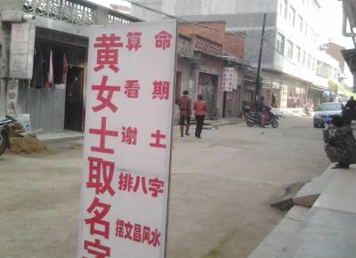 (读者)算命招牌街头摆 算命、排八字、摆风水……在随州市洪山镇老街看到,不足30米的老街两旁竟然开了贾先生、黄女士、肖先生、顾先生、周先生等5、6家相命馆。有些招牌甚至摆在街头最显眼的位置(如图)。 附近居民说,这些算命、相面馆已成为老街的老招牌了,而且“生意”还相当火。有些人还以此为职业。 党和国家三令五申地禁止迷信活动,洪山镇老街的算命迷信活动为何还如此有“市场”,到底有没有人管理?到底有没有人负责? 这里的迷信活动到底么时刻能取缔?这里的迷信风气到底么时刻能扭转?随州市洪山镇作为全国村镇建设先进乡镇、全省楚天明星镇,更应该加强精神文明建设,别让迷信的歪门邪道影响本地安全团结的生活。