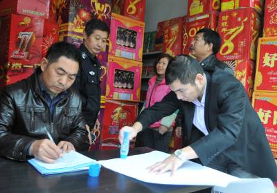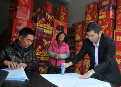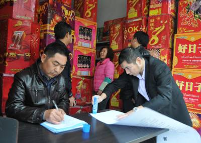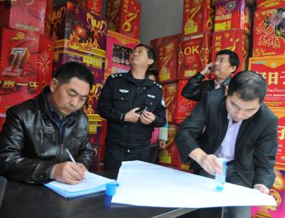 5日,巴东县官渡口镇安委会执法人员正在西溪坝村发放烟花爆竹百日专项整治通告书,检查进货渠道及经营场所规范等。 为了打击烟花爆竹走私和非法生产、经营、批发、储存、运输等行为,巴东县安监局牵头,公安局、工商局、供销社及乡镇安委会成员单位在全县启动烟花爆竹百日专项整治行动,发挥三级监管网络平台的作用,采取明查暗访等形式,对非法闲置厂房、空壳村和传统“产区”、非法经营烟花爆竹问题突出的乡镇、村(居)开展地毯式排查,不留死角,层层签订《烟花爆竹安全生产责任书》,重点打击那些打着合法经营幌子从事“私销”的经营者,保证群众及行业安全。(本报视界网 梁勇 摄)