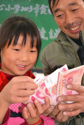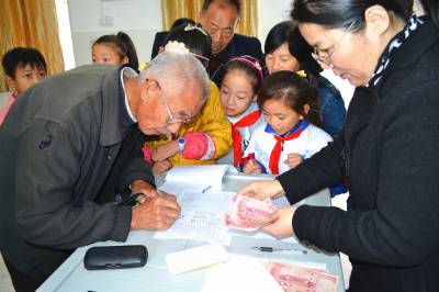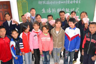 11月6日,湖北省郧县柳陂镇中心小学召开2013年贫困寄宿生生活补助发放会,该校40名贫困寄宿学生的家长,高高兴兴领取了1000元补助金,并作为自己孩子全年的生活费用补贴。