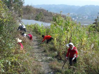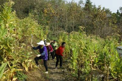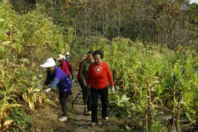 11月4日,在鹤峰县走马镇官仓村张冬梅的烟地里,近10名妇女砍除烟秆,准备移栽茶苗。目前,正值翻耕土地、移栽油菜及茶苗等冬季农业开发时,该镇很多留守妇女自发成立互助组,根据各家农活的缓急程度,合理安排帮工顺序,有效解决劳动力紧缺的难题。 汪正玺 摄