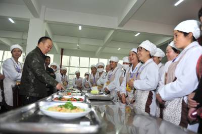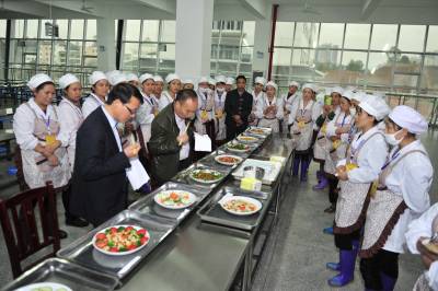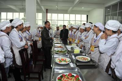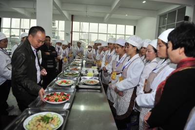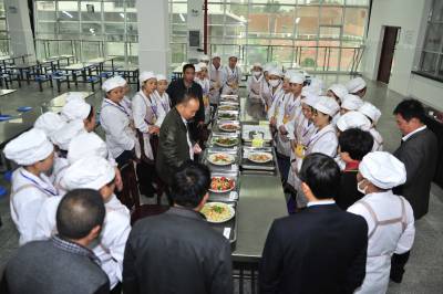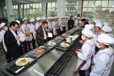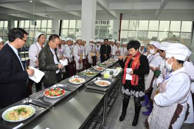 校园厨嫂比才艺(校园厨艺大比拼) 11月7日,评委对厨嫂的作品进行现场打分、点评。 当天,恩施自治州硒都民族实验小学举行首届厨艺技能大赛,该校食堂“厨嫂”40人通过文明用语朗读,健康知识答题,限时制作传统菜、创意菜,专家现场品尝、点评的方式,进行厨艺大PK。 视界网 谢顺 钟华斌 摄 恩施市新闻中心 记者 谢顺 13277590198