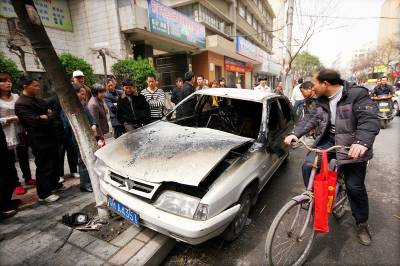 20日中午,在荆门市金虾路中段,一辆无人驾驶轿车撞上树后冒烟起火,车内可燃物被燃成一团灰烬。据女车主称,她将车停到康复医院对面的路上,并拔了车钥匙,拉上手刹,然后下车准备到餐馆吃饭。没过两分钟,她发现自己的车在无人驾驶的情况下突然启动,并向着冲了约50米,然后撞上树起火燃烧,消防官兵及时赶到将火扑灭。附近的商户及市民也称该车在无人的情况下启动行驶,觉得不可思议。目前,该轿车的经销商已介入调查。视界网摄影师朱运兵摄