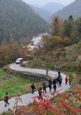 11月8日,建始县花坪镇黄鹤村刚铺好的水泥路人流如织。作为省级新农村示范村建设试点村,省直新农村工作队花大力气改善这里落后交通面貌,帮扶的省农业发展银行和湖北民院共筹资50余万元,组织村民“一事一议”筹资筹劳方式,先后完成4条6公里组级公路硬化,到户断头路10余公路,形成组组通水泥路、户户通砂石路的村内村外循环格局,当地村民无不把这一条条铺向新农村的道路称为“帮扶路”。本报视界网刘波摄 建始县新闻中心刘波联系电话13032794298