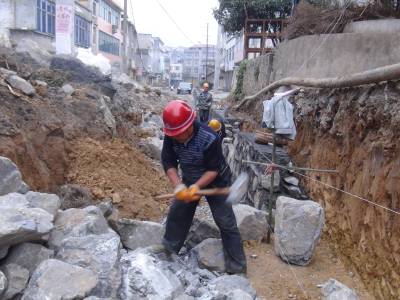 11月8日,鹤峰县走马镇官鼎新村居民点的下水道建设工地上,工人们正紧张施工。走马镇把国土项目与新农村生态建设、村庄整治建设紧密结合,使村容村貌得到有效改善。 近年来,该镇国土整治项目规模达3913.38公顷,总投资1.4亿元,涉及25个行政村,惠及群众3万余人。