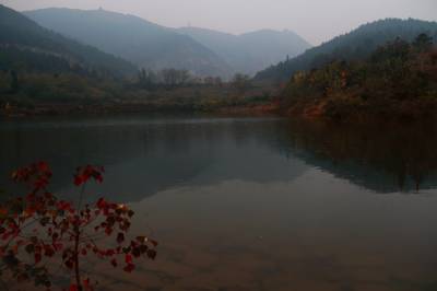 湖北南漳:一汪湖水映晚霞