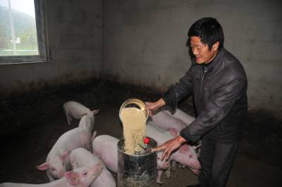 11月12日,在恩施市三岔乡茴坝村生猪养殖小区,养殖户陈文学正在给生猪喂食。据陈文学介绍,他家今年按照生猪养殖“150”模式投建了生猪养殖场,目前日存栏有生猪40多头,已出栏生猪100多头,今年毛收入有望突破10万元。