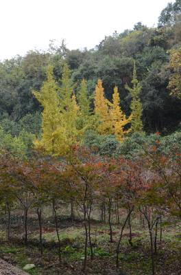 三峡植物园的银杏树与红叶