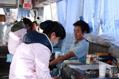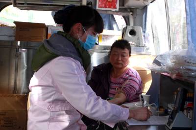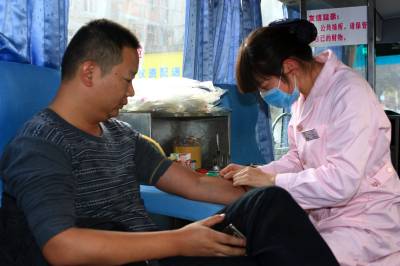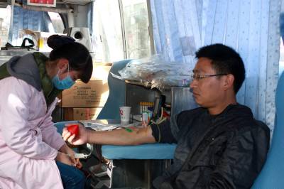无偿献血常态化 11月14日,竹溪县水坪镇财政所长洪万梅正在献血。到下午四时发稿时,该县水坪镇机关干部和当地群众已向十堰市中心血站献血7000毫升,这是连续第三年该镇开展的无偿献血活动。(本报视界网 洪万梅 王忠春 摄)