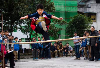 2013年11月14日,黄金洞乡民族中小学学生正在进行秋季运动会跳高比赛。据悉,该校以秋季运动会为契机,提倡全校学生“每天锻炼一小时,幸福生活一辈子”的要求,以不同形式组织校内集体活动,激发青少年以热爱生活、团结友爱、追求梦想、实现超越为目标,全面提高青少年的综合素质。本报视界网 吴朝军摄