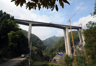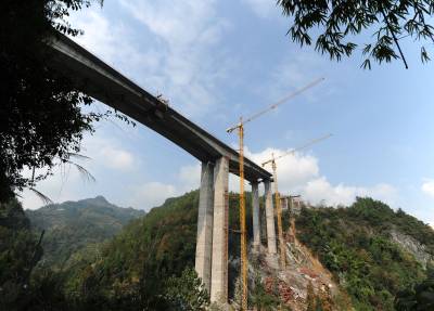 图 恩来恩黔高速控制性工程建设正酣 11月15日,高洞子大桥建设工地一派繁忙,大桥即将合拢。 高洞子大桥位于恩施市芭蕉侗族乡甘溪村境内,是恩来恩黔高速控制性工程之一,目前已完成80%工程量。据介绍,恩来恩黔高速恩施市境内的几个重点控制性工程建设进展顺利,均已完成75%以上的工程量。本报视野网 王波 刘惠 摄