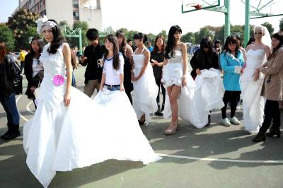 武汉大学生3米卫生纸制作创意婚服惊艳校园