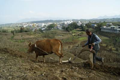 11月15日,鹤峰县走马镇古城村九组留守老人正赶着耕牛翻地。该镇很多村民的田地属于坡地,难以开展机械化作业,家里便养上耕牛,既当生产工具,又可以出售增收。当前,正值入冬备耕的有利时机,但由于农村年轻劳动力大量外出,留守老人成了冬季农忙的生力军,他们利用农闲时间开展翻地和病虫害防治等农活,为明年丰收打下基础。