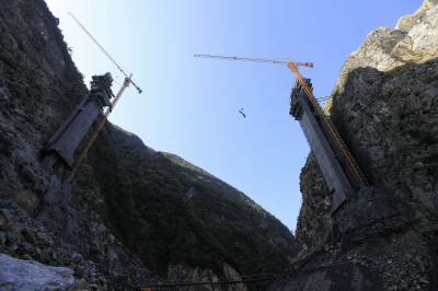 湖北秭归:三峡枢纽江南成品油码头完成首个墩台浇筑施工(客户端采稿)