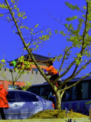 2013.11.16又去钱冲,今天人流如潮,天高地迥,杏叶金闪。无奈电池不给力,一半而光,使人扫兴之。